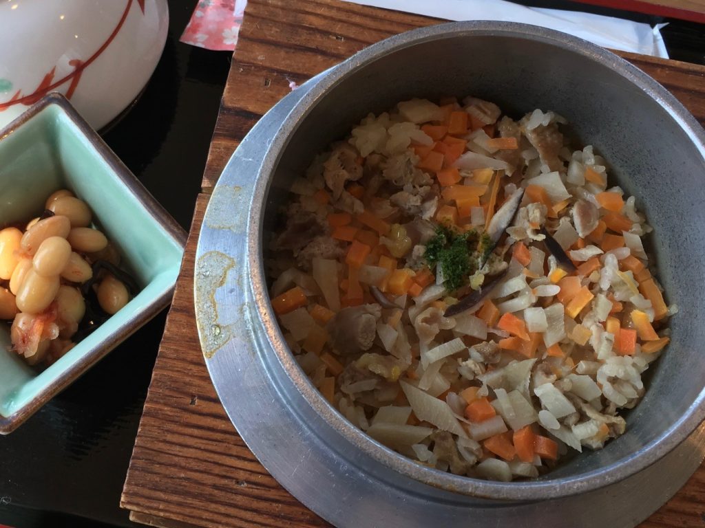 • 昼食には笠置山で100年以上続く料理旅館「松本亭」の雉の釜めしをご用意しております。