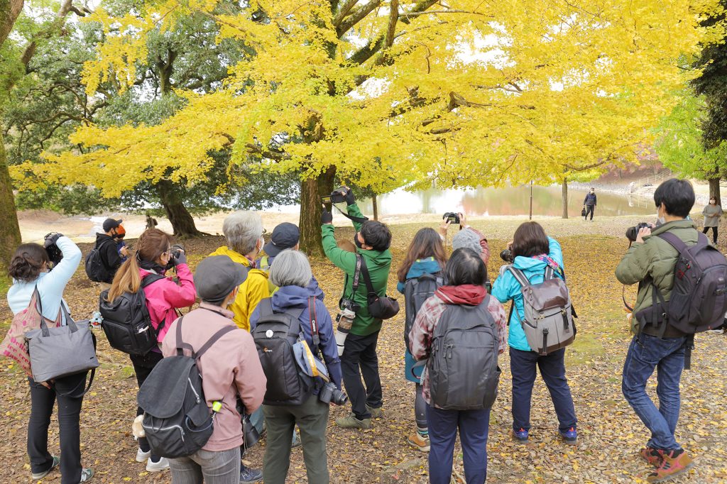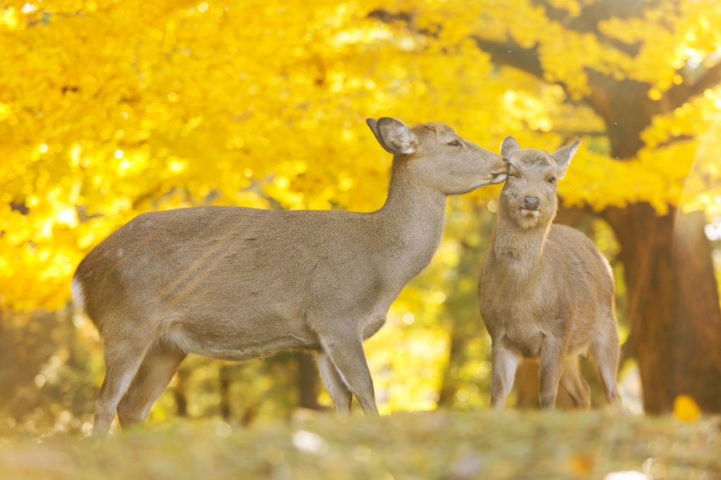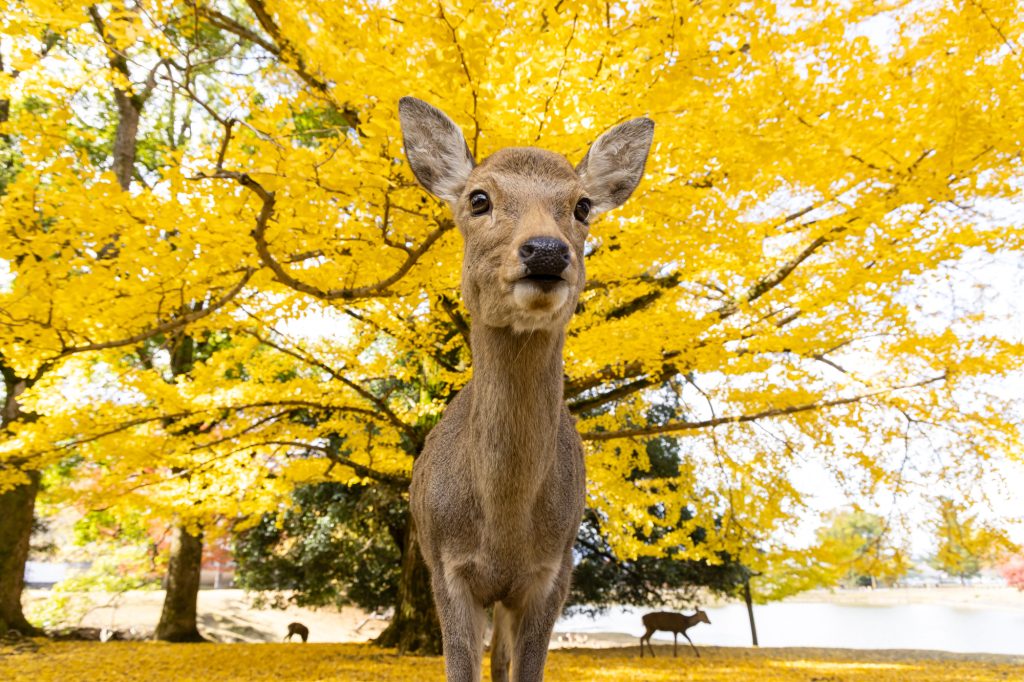 • 当日は例年、東大寺の裏手にある大仏池の大きなイチョウが見頃を迎えます。美しく紅葉したイチョウと鹿のいる風景を、ぜひ写真に残してください。(撮影:佐藤和斗)