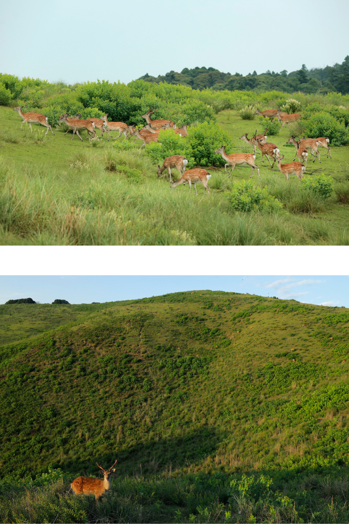 過去の撮影会風景です。夕暮れの中に浮かぶ鹿たちのシルエットに、参加した方々は夢中でした!