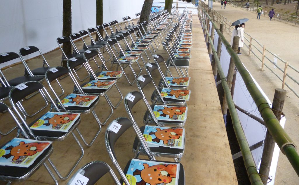 | 備考 | ■おん祭解説書付(※会場受付にてお渡しいたします。) ■予約済のお客様は当日12時30分までに受付をお済ませください。お時間に間に合わなかった場合はキャンセルとみなし、当日券として販売させて頂きますのでご了承ください。 ■招待席・旅行会社席を事前に設けさせていただく場合がございます。 ■桟敷席の代金は、当日受付時にお支払い下さい。(※現金のみ対応) ■「松の下桟敷席」は階段や段差があるため、車いすをご利用の方は「登大路園地桟敷席」を おすすめいたします。 |