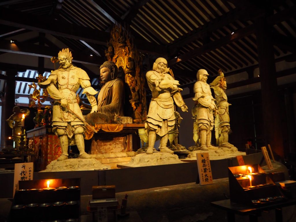 • 行程の最後は新薬師寺です。僧侶の案内のもと薬師如来(国宝)、十二神将立像(11体が国宝)などを拝観します。夕暮れから夜の闇に包まれる時間を、静寂の新薬師寺でお過ごしください。(写真提供:新薬師寺)