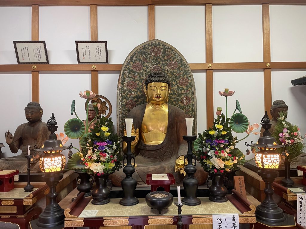 2番目に訪れるの南明寺。771(宝亀2)年の創建といわれる古寺です。鎌倉時代の寄棟造りの本堂(重文)に安置される本尊薬師如来・釈迦如来・阿弥陀如来の藤原三仏(いずれも重文)をはじめ、他に蔵菩薩半跏像などをお参りします。